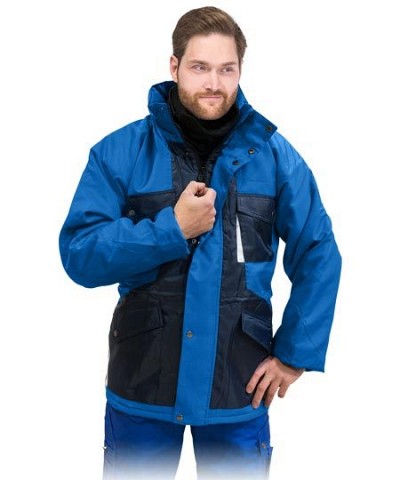 Zimska bunda je primerna za delo pri nižjih temperaturah ter vetrovnih razmerah. Zunanji material: 100% poliester, zunanja podloga: 100 % poliester, 200 g/m2. Notranja podloga: 100 % poliester 190T. Bunda se zapenja na zadrgo, s kapuco (v ovratniku). Ima 4 zunanje žepe, ki se zapenjajo na gumbe ter znotraj žep. Možnost tesnitve. Bunda je vetro in vodotesna in zato primerna tudi za zunanja dela. Velikosti: M-XXL. Barva: Črna/modra. Zimska bunda je primerna za delo pri nižjih temperaturah, za splošno delo, za prosti čas, gradbena dela, montažna dela, reprezentativne namene, delo v skladišču, transportu, distribucijo.