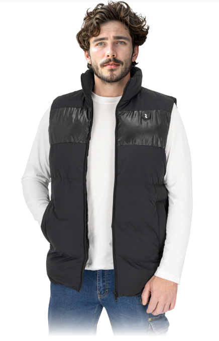 Grelni telovnik ustreza standardom EN ISO 13688. Barva: Črna. Grelni telovnik je primeren za delo v logistiki, za delo v skladišču, za gradbena, montažna dela, delo v avtomobilski industriji, obrtna dela in več.
