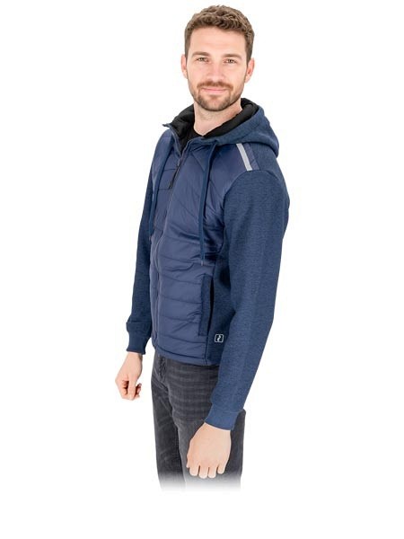 Jopa je primerna ja prehodna obdobja. Je iz flisa na notranji strani, 100% poliester, 370 g/m². Prešiti vložki so iz 100% najlonske tkanine, 40 g/m. Material: 100% poliester 140 g/m². Zapenja se na zadrgo. Ima kapuco z vrvico. Dva žepa sta v spodnjem delu. Z odsevnimi elementi. Po standardih EN ISO 12947-2 in EN ISO 13688. Barva: modra. Jopa je primerna za splošno delo in za prosti čas.