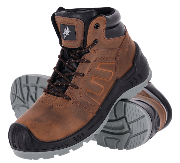 Zaščitni čevlji Titan Bronco S3S FO SR združujejo vrhunsko zaščito, udobje in moderen videz, primerni so za zahtevno delo v industriji, gradbeništvu in logistiki. Izdelani so iz kakovostnega nubuk usnja Crazy Horse, segajo do gležnja in se zapenjajo z vezalkami za stabilno prileganje. Podplat iz poliuretana in gume je protizdrsen, odporen na olja in antistatičen, hkrati pa nudi dobro blaženje v petnem delu za večje udobje pri hoji. Vgrajen kompozitni prstni del ščiti stopalo pred udarci do 200 J, kevlarska zaščita v podplatu pa preprečuje prebod s silo do 1100 N. Sprednji del čevlja dodatno ščiti gumijast rob pred obrabo, odsevni elementi pa izboljšajo vidnost in varnost pri delu v slabših svetlobnih pogojih. Čevlji sodijo v varnostni razred S3 S FO SR, so brez kovinskih delov in tako lažji ter udobnejši za nošenje. Na voljo so v barvni kombinaciji črna–rjava in velikostih od 39 do 47.
